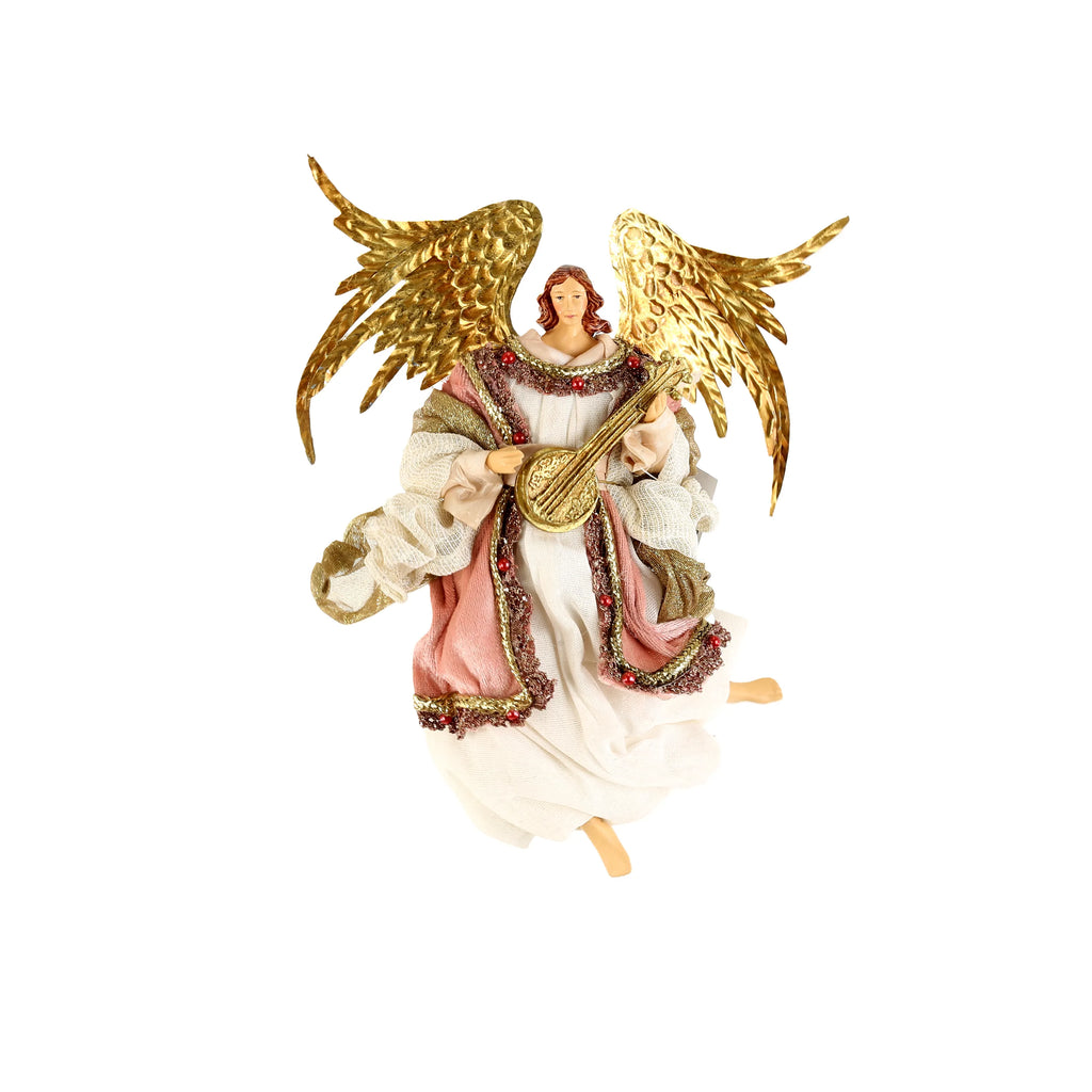 Angelo Con Liuto Rosa Beige 20x10x23 Cm