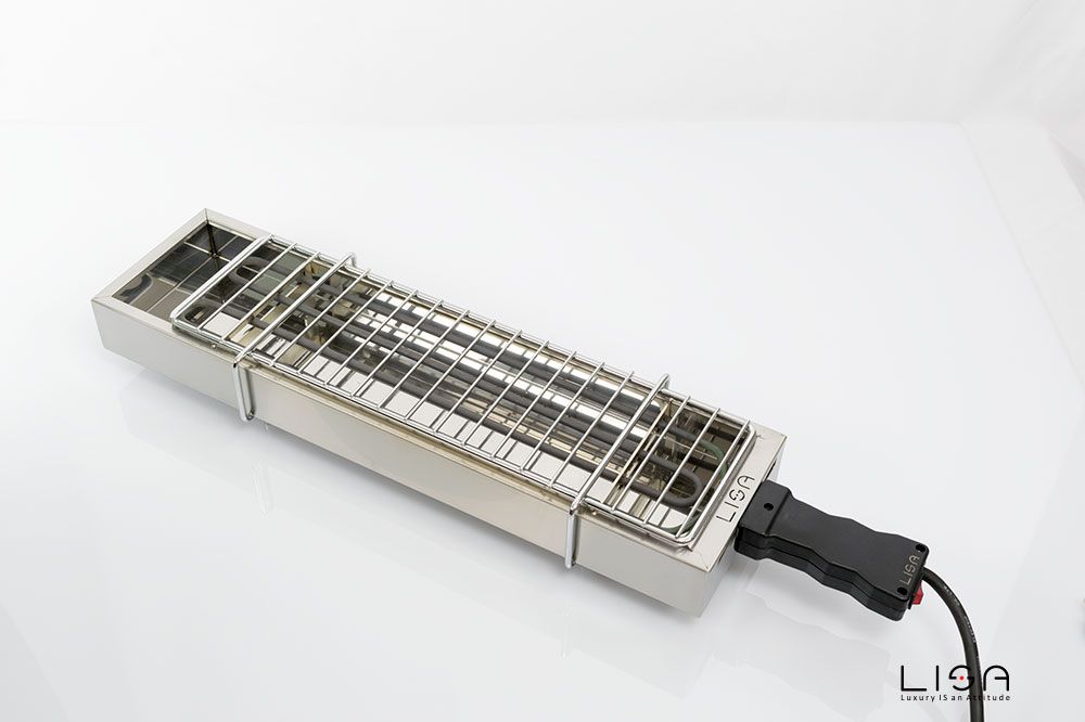 Questo Barbecue Lisa si distingue per il suo design moderno ed elegante. È infatti realizzato interamente in acciaio inox AISI 430 con finitura lucida. Le dimensioni compatte di 67x14x9 cm lo rendono ideale per qualsiasi ambiente, dal terrazzo di casa all'appartamento in città, offrendo una superficie di cottura di 45x14 cm perfetta per preparare deliziosi arrosticini, carne, pesce e verdure.
