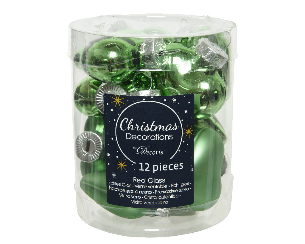 BOX 12 CUORI VETRO 2X4,5X4 CM MISTLETOE GREEN