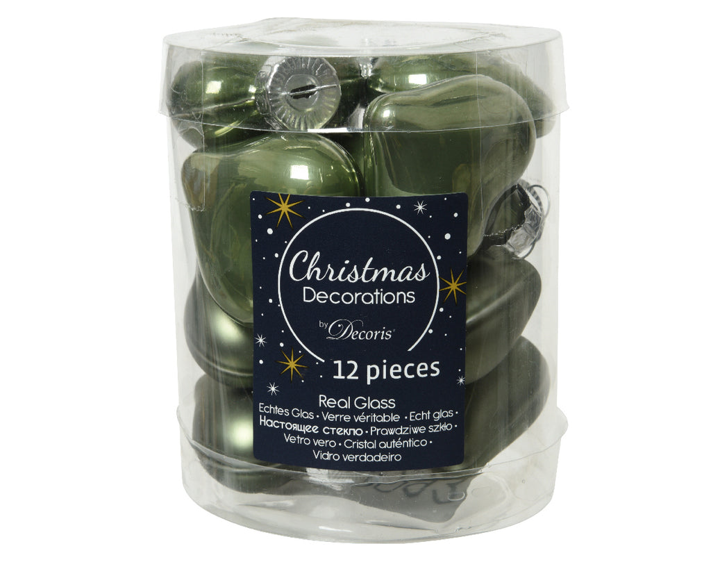 BOX 12 CUORI VETRO 2X4,5X4 CM MOSS GREEN