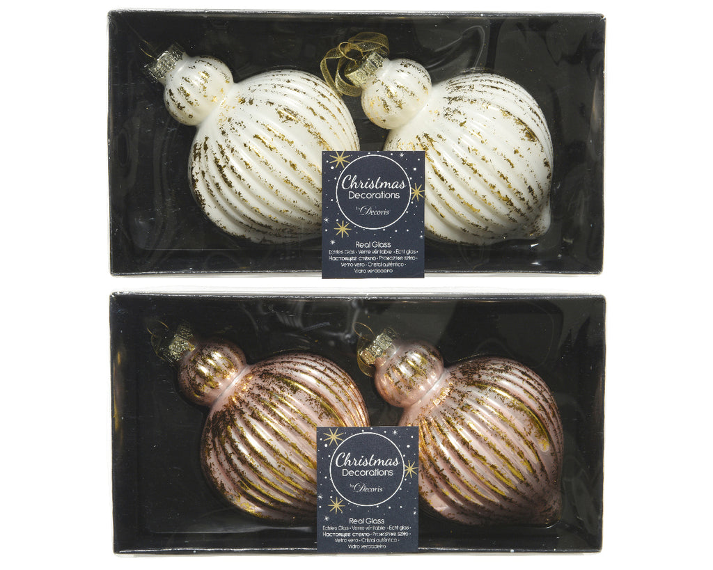 BOX 2 ORNAMENTI VETRO D 8 CM DECORO ORO