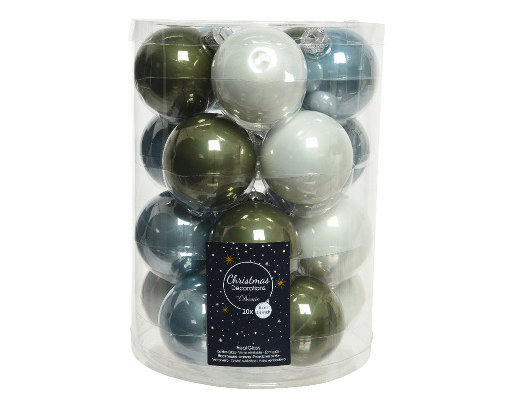BOX 20 PALLE DI NATALE VETRO D 6 CM MISTY BLUE