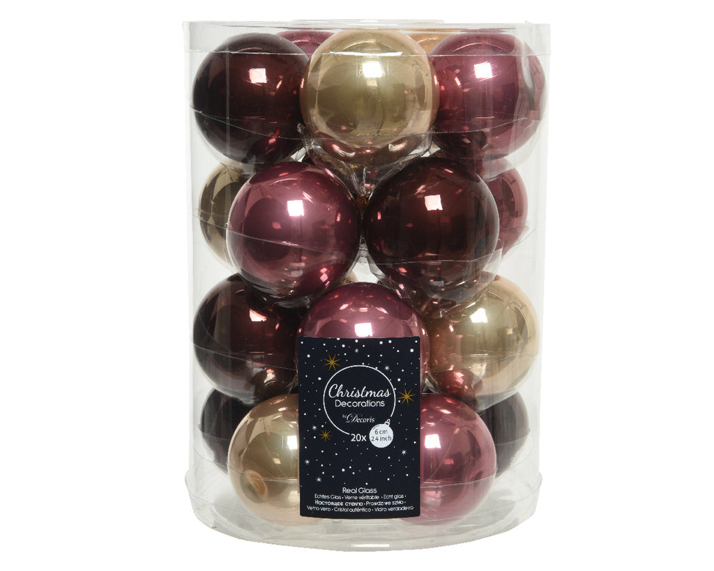 BOX 20 PALLE DI NATALE VETRO D 6 CM VELVET PINK