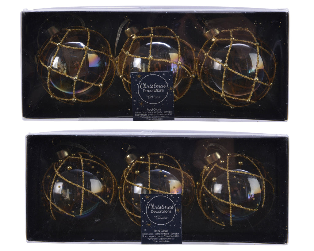 BOX 3 PALLE DI NATALE D 8 CM TRASPARENTI DECORO ORO