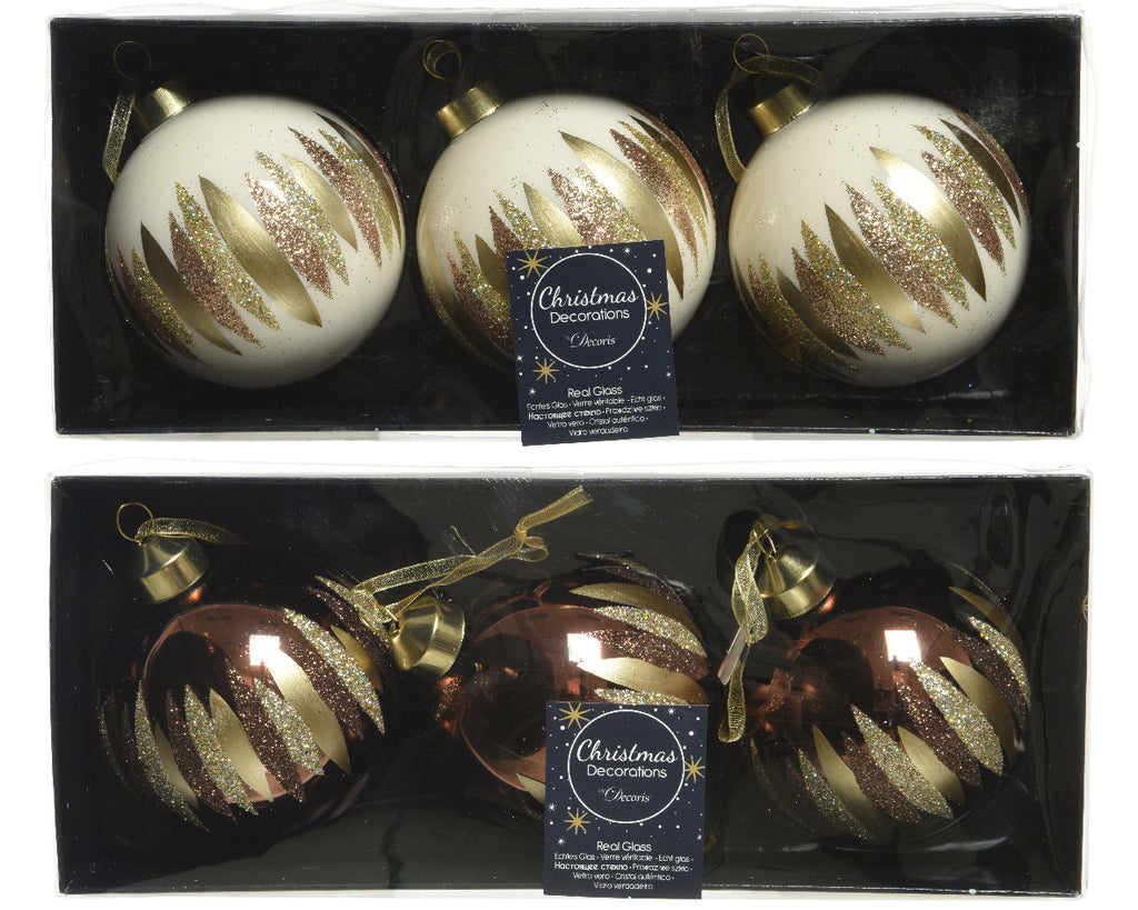 BOX 3 PALLE DI NATALE DECORO FOGLIE ORO D 8 CM