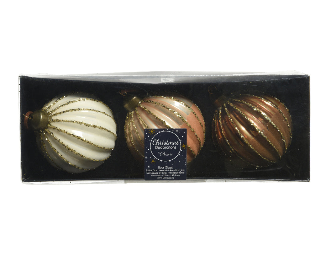 BOX 3 PALLINE DI NATALE D 8 CM BROWN RIGHE ORO