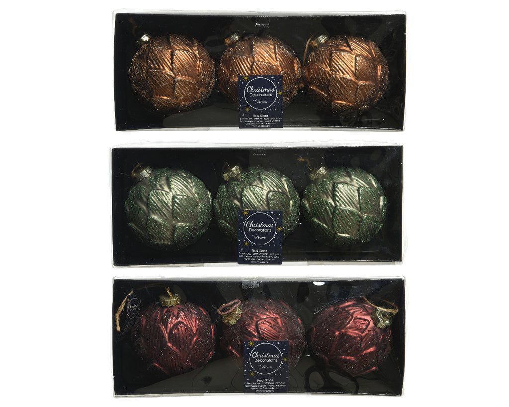 BOX 3 PALLINE DI NATALE D 8 CM DECORO RILIEVO