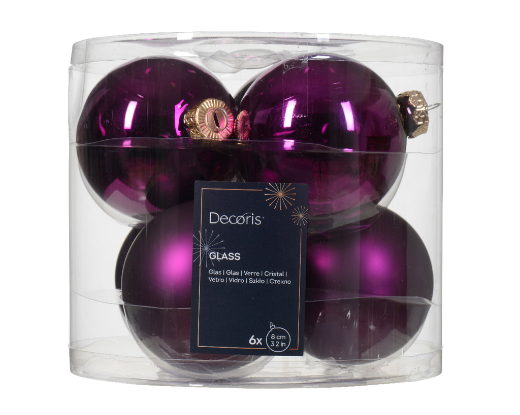 Box 6 Palle Di Natale Vetro Violet 8 Cm