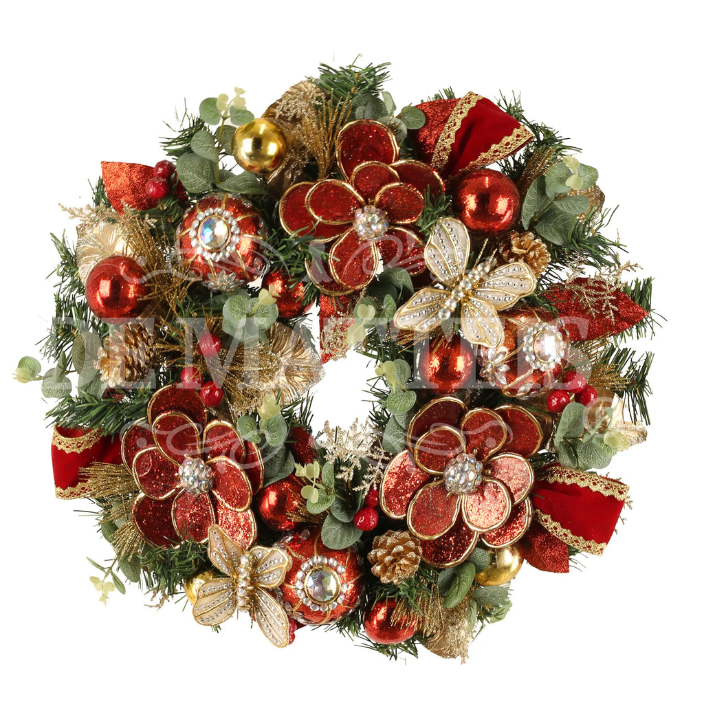 Corona Decorata Rosso Oro D 50 Cm