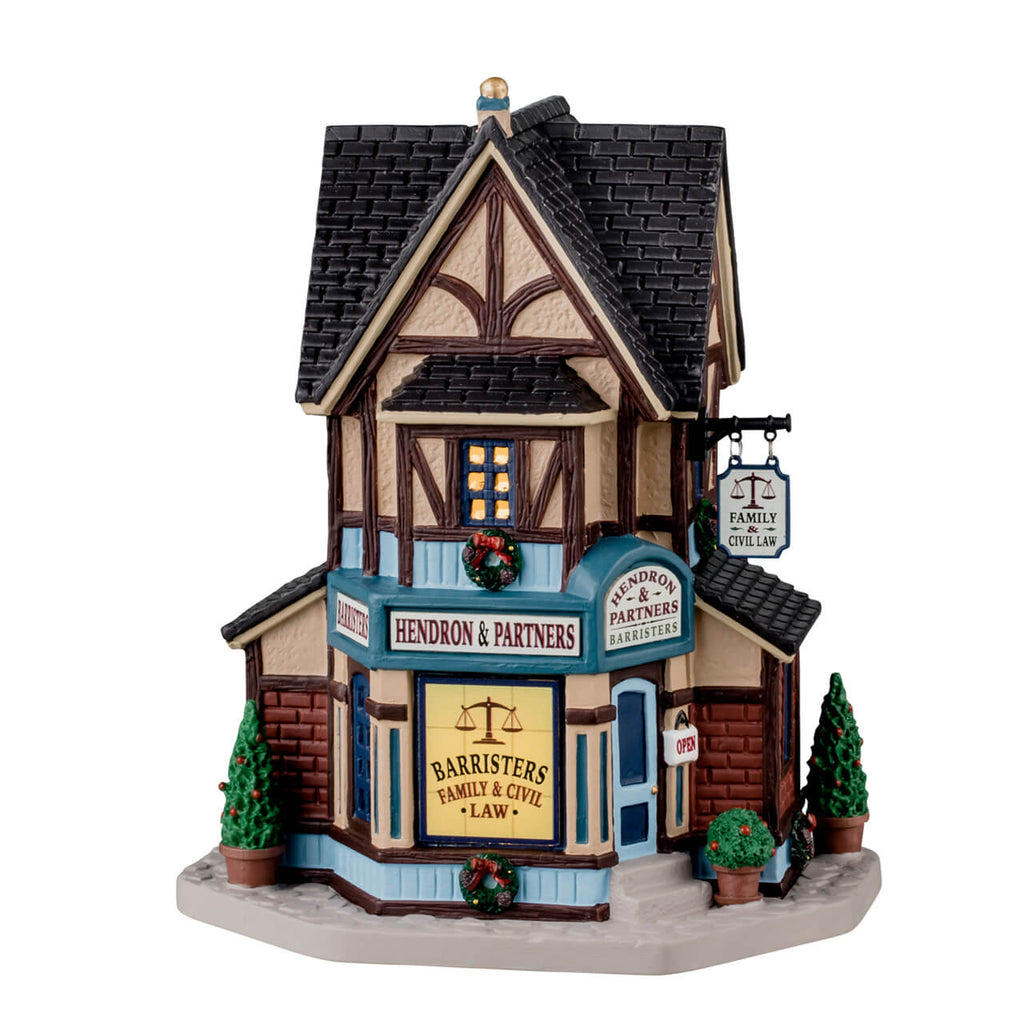 Il Villaggio di Natale Lemax si arricchisce di un nuovo elemento di prestigio con questo edificio professionale che unisce tradizione architettonica e spirito natalizio. Aggiungi subito Hendron E Partners Barristers Lemax alla tua collezione e lasciati conquistare dalla sua eleganza senza tempo.