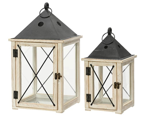 Lanterna Bianca Con Decoro Metallo 18x18x34,5 Cm
