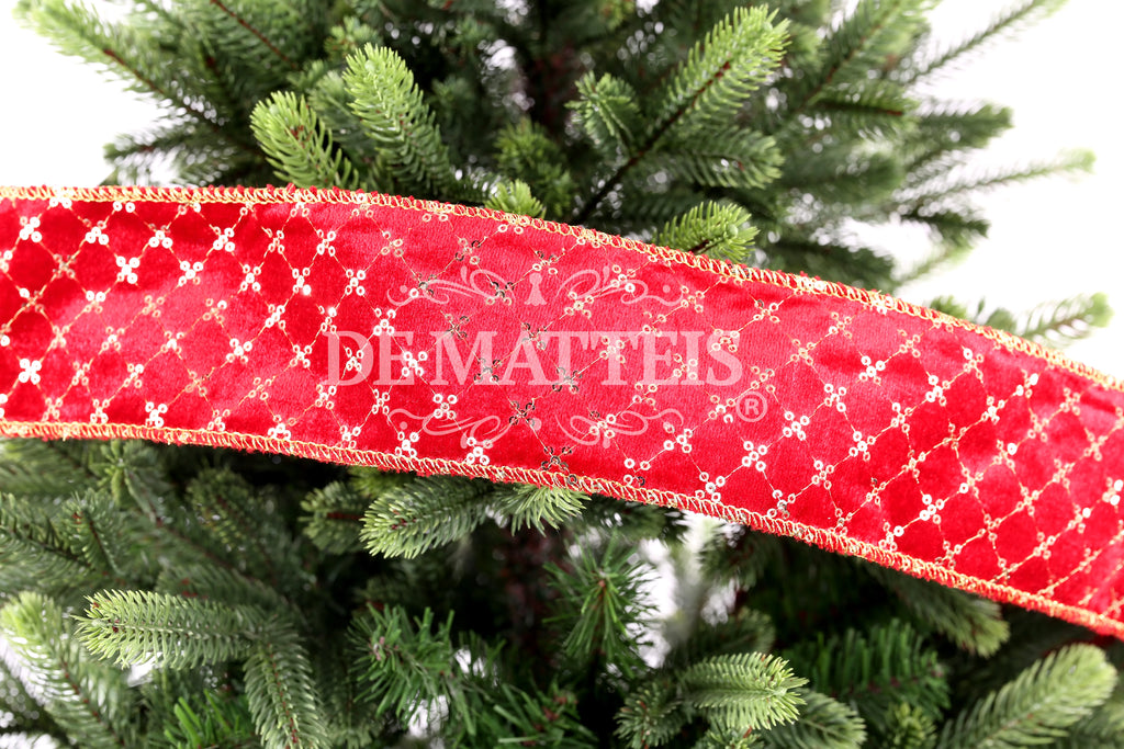 Nastro Velluto Rosso Decoro Oro 5 Mt