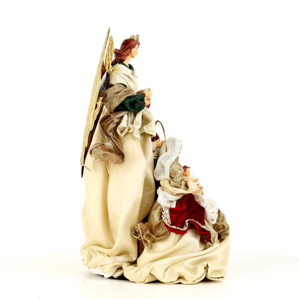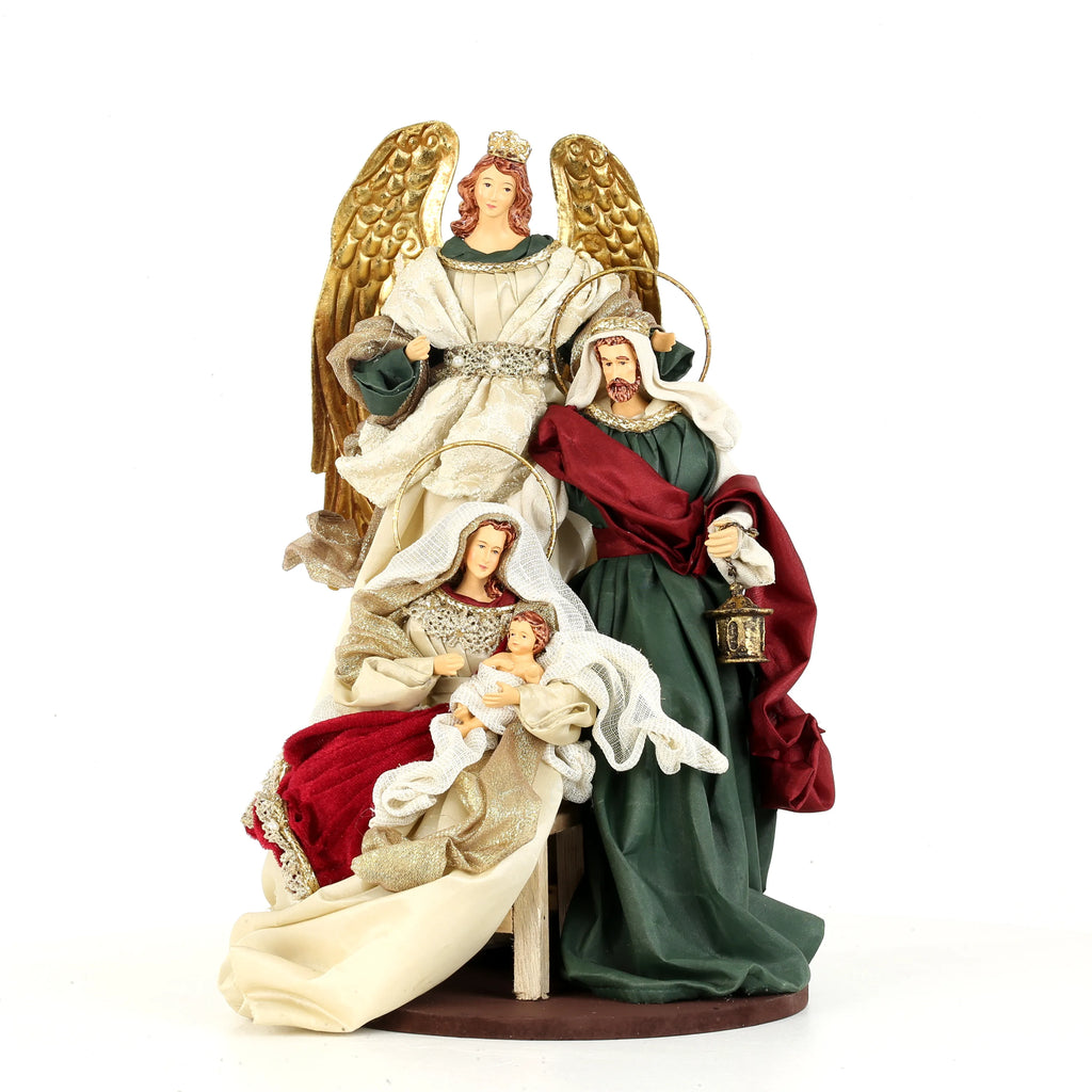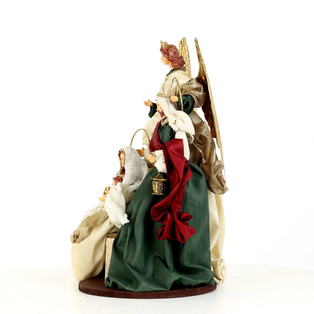 Natività Su Base Con Angelo Cololori Pregiati 23x23x40 Cm