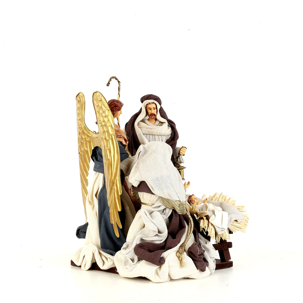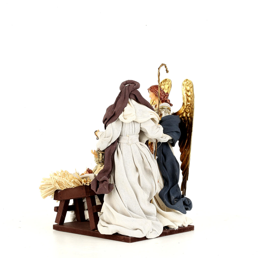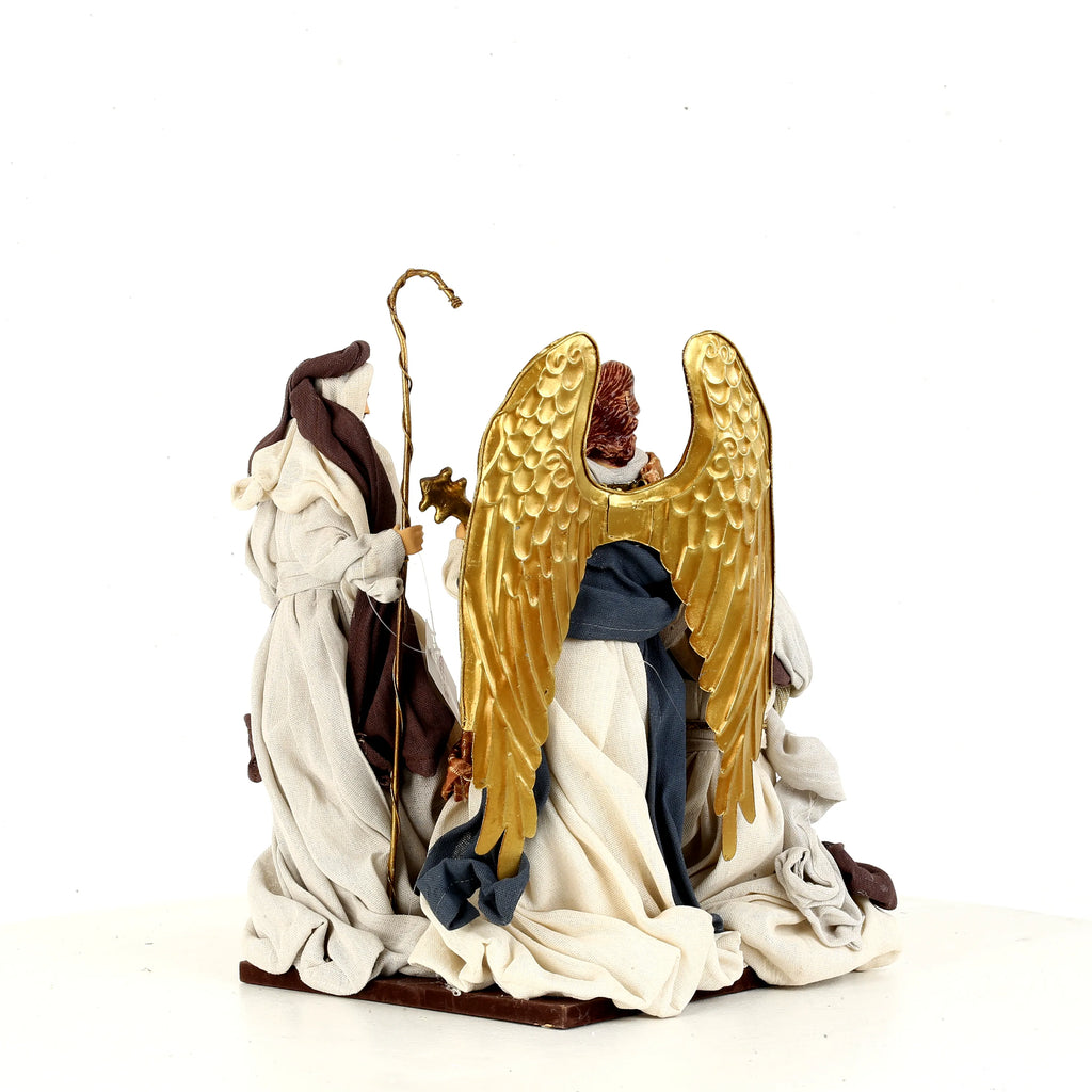 Natività Su Base Con Angelo Colori Tradizionali 23x23x28 Cm