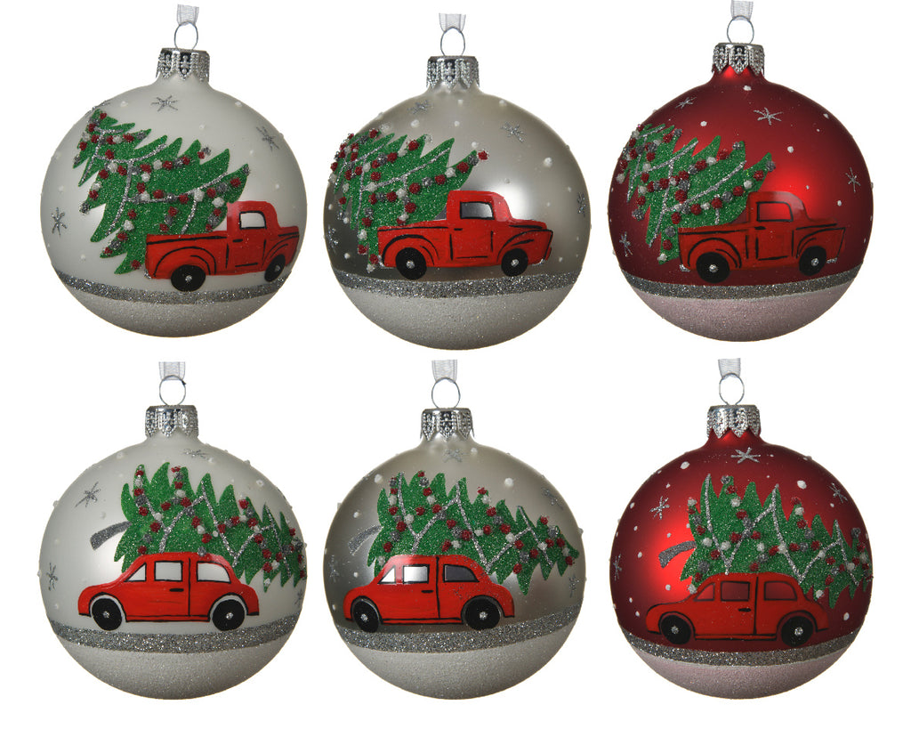 PALLA DI NATALE CON MACCHINA ALBERO D 8 CM 1 PEZZO