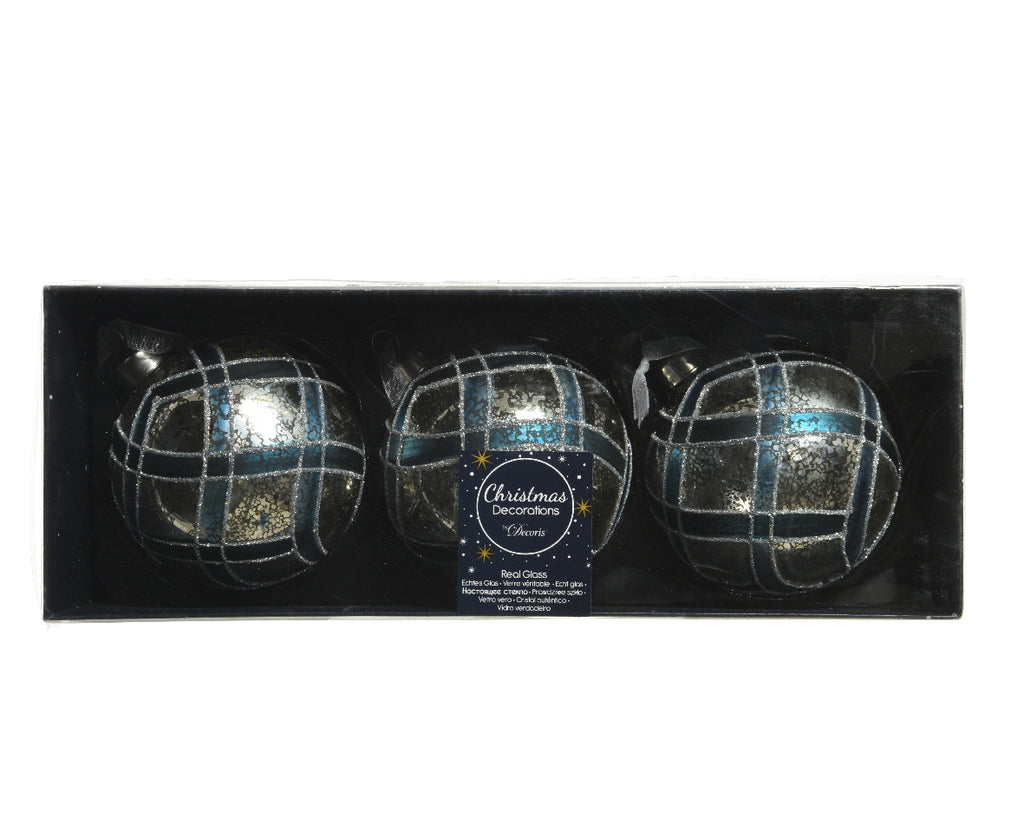 PALLA DI NATALE D 8 CM BLU SILVER MARTELLATA