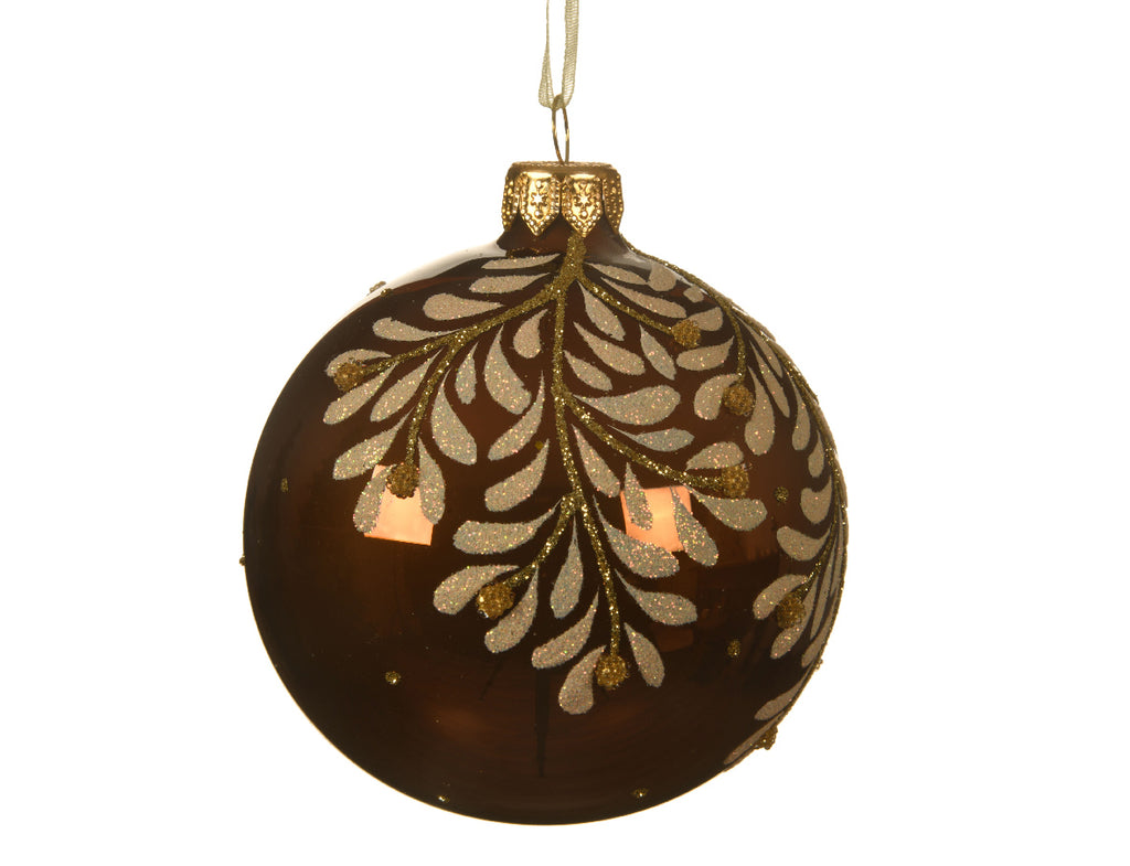 PALLA DI NATALE D 8 CM CINNAMON DECORO FOGLIE ORO