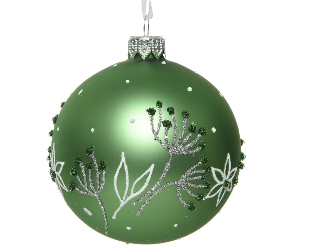 PALLA DI NATALE D 8 CM MISTLETOE GREEN FIORI ARGENTO