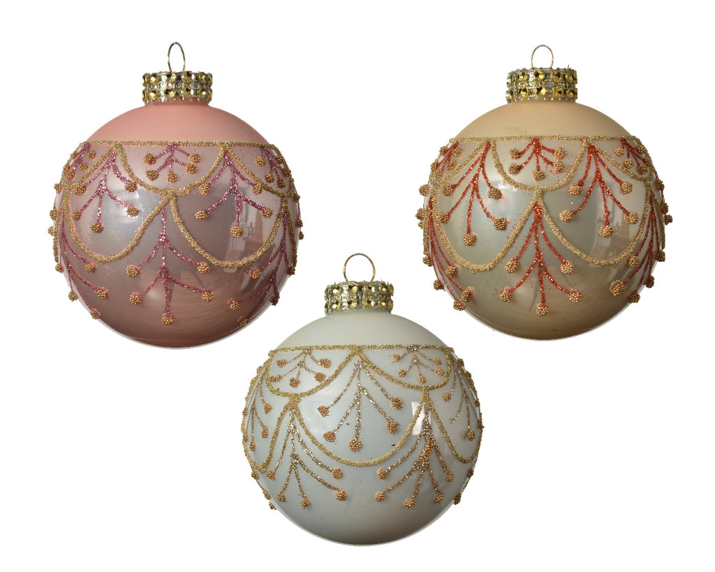 PALLA DI NATALE D 8 CM ROSA DECORO ORO