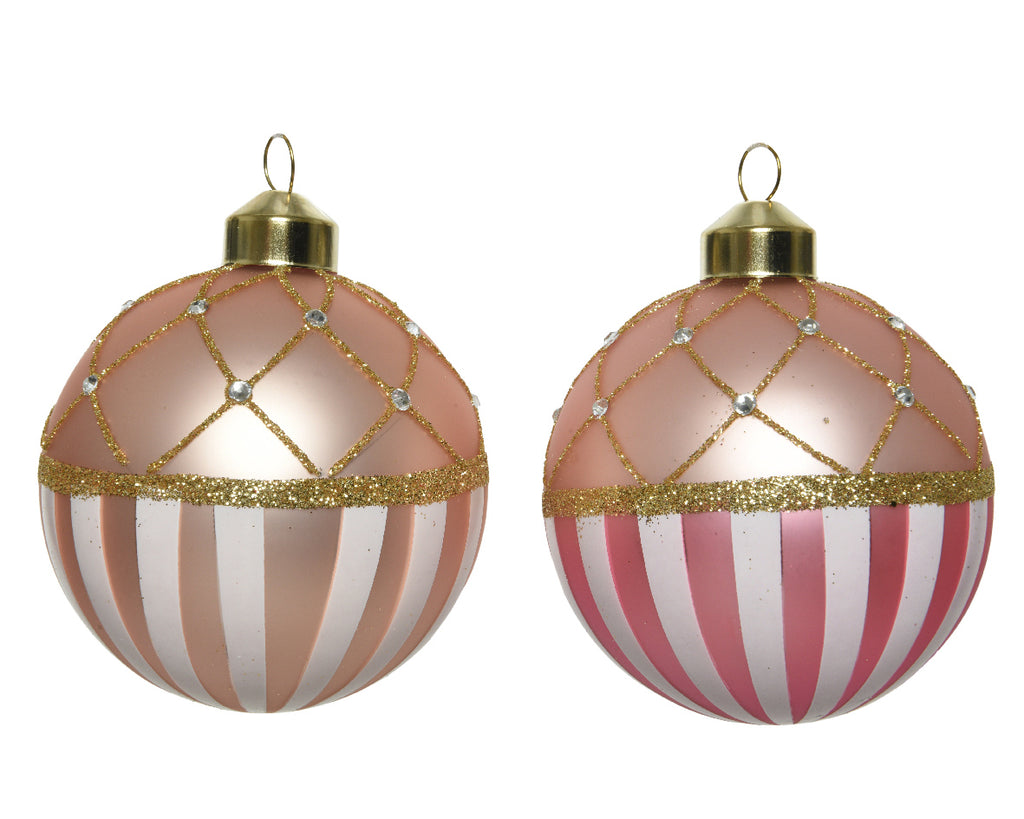 PALLA DI NATALE D 8 CM SOFT PINK DECORO ROSA ORO