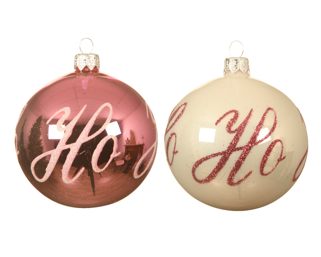 PALLA DI NATALE D 8 CM SOFT PINK SCRITTA HO HO HO