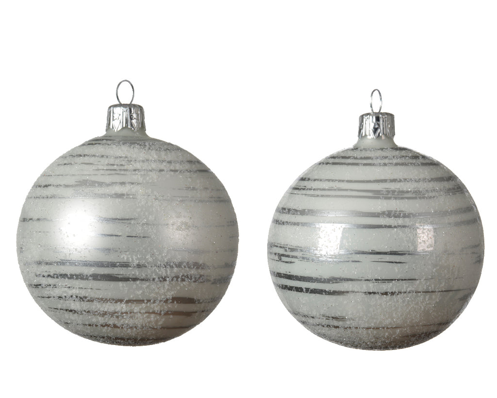 PALLA DI NATALE D 8 CM WINTER WHITE LINEE ARGENTO