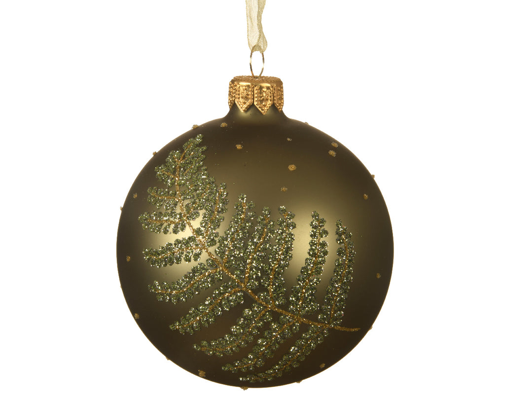 PALLA DI NATALE MOSS GREEN D 8 CM FOGLIE GLITTER