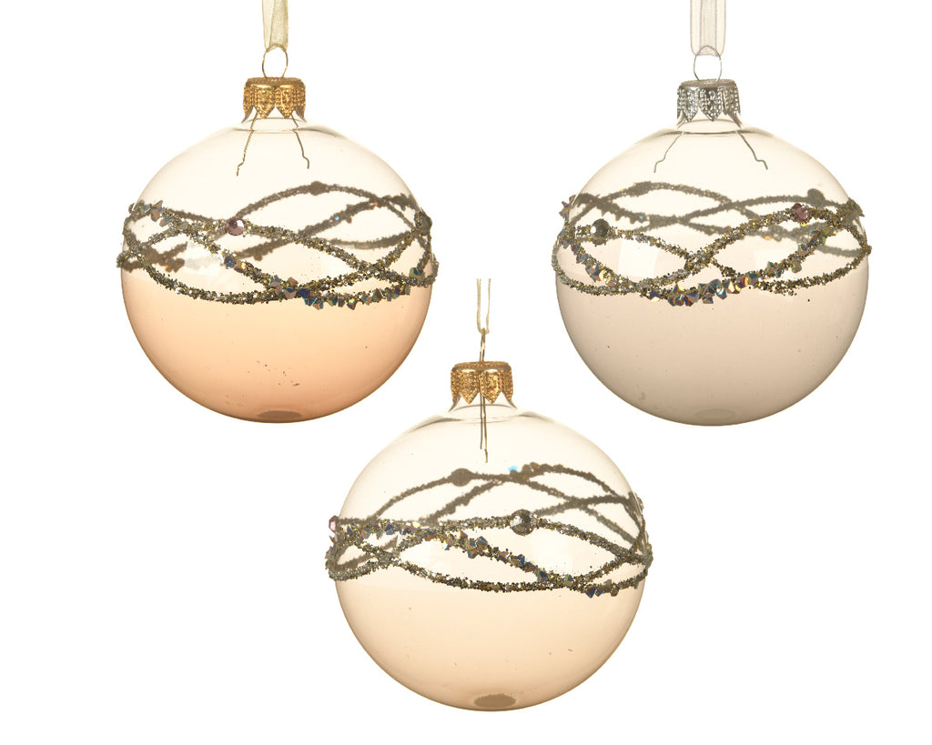 PALLA DI NATALE SOFT PINK DECORO ARGENTO