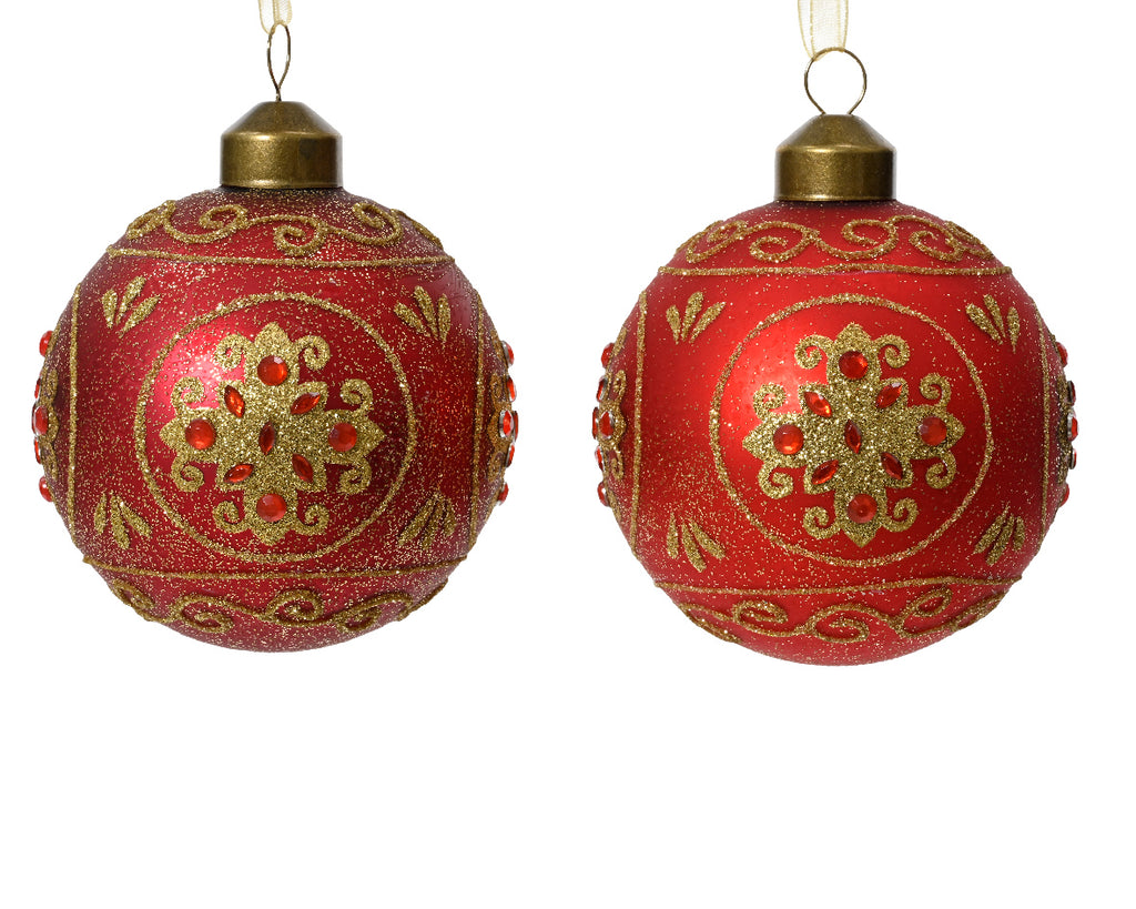 Palla Di Natale Vetro Red Cm Dettaglio Oro 8 Cm 1 Pz