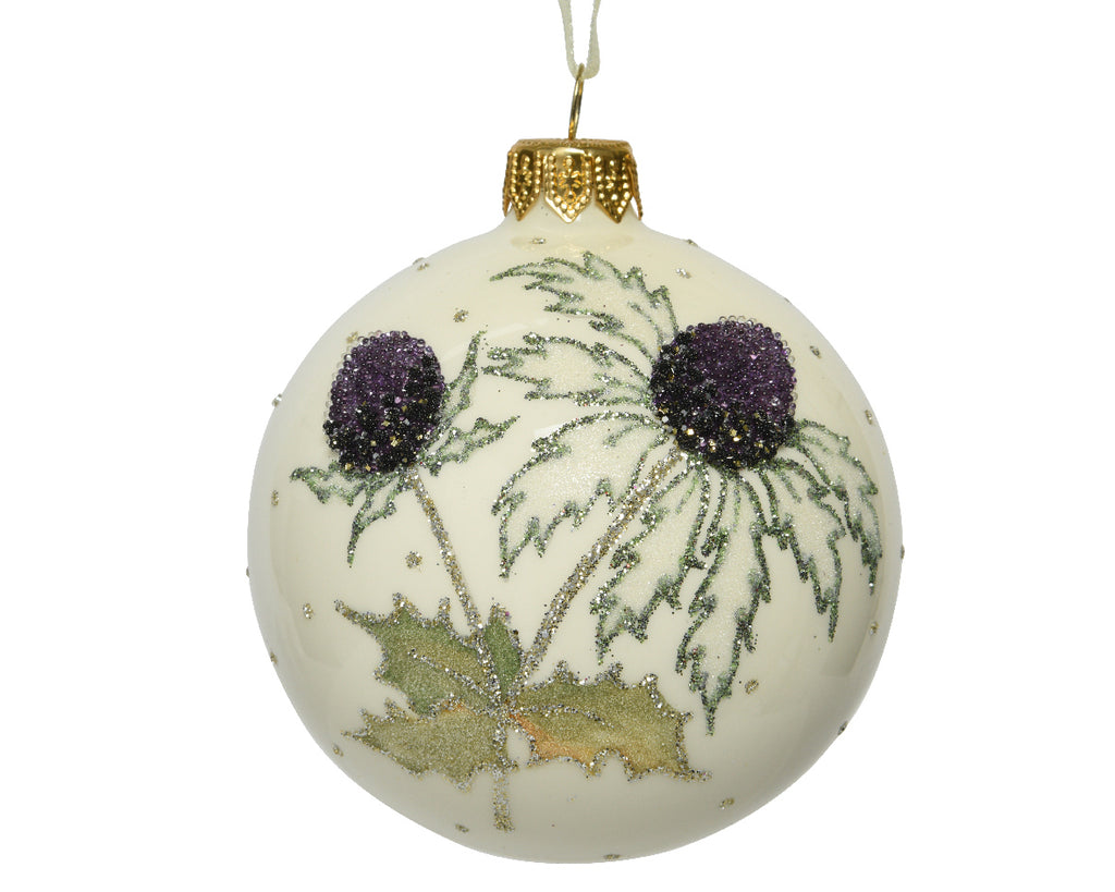 SFERA DI NATALE D 8 CM WOOL WHITE FIORE RILIEVO