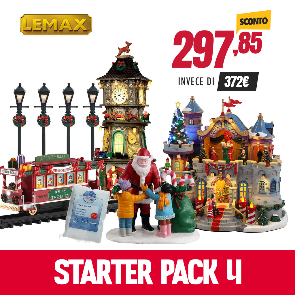 Lo Starter Pack Livello Avanzato è un kit per costruire il tuo primo villaggio di Natale Lemax in miniatura ed è composto da: