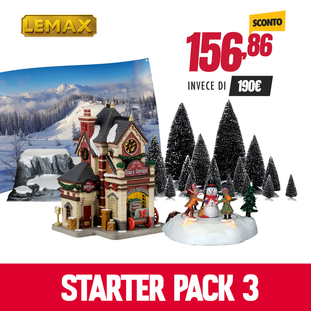 Lo Starter Pack Livello Intermedio è un kit per costruire il tuo primo villaggio di Natale Lemax in miniatura ed è composto da: